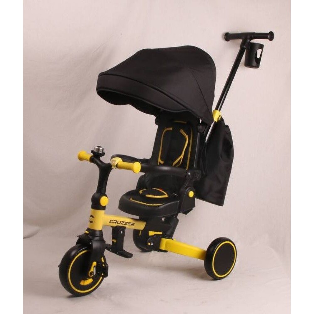 Дитячий триколісний велосипед-трансформер CruzzEr - це зручний та безпечний транспорт для прогулянок з малюком. М'яке сидіння з високою спинкою, регульований тент від сонця та надійна ручка управління роблять поїздки комфортними як для дитини, так і для батьків. Міцна рама, зручні підніжки та захисний бампер забезпечують безпеку, а яскравий дизайн привертає увагу та робить велосипед стильним аксесуаром для прогулянок.