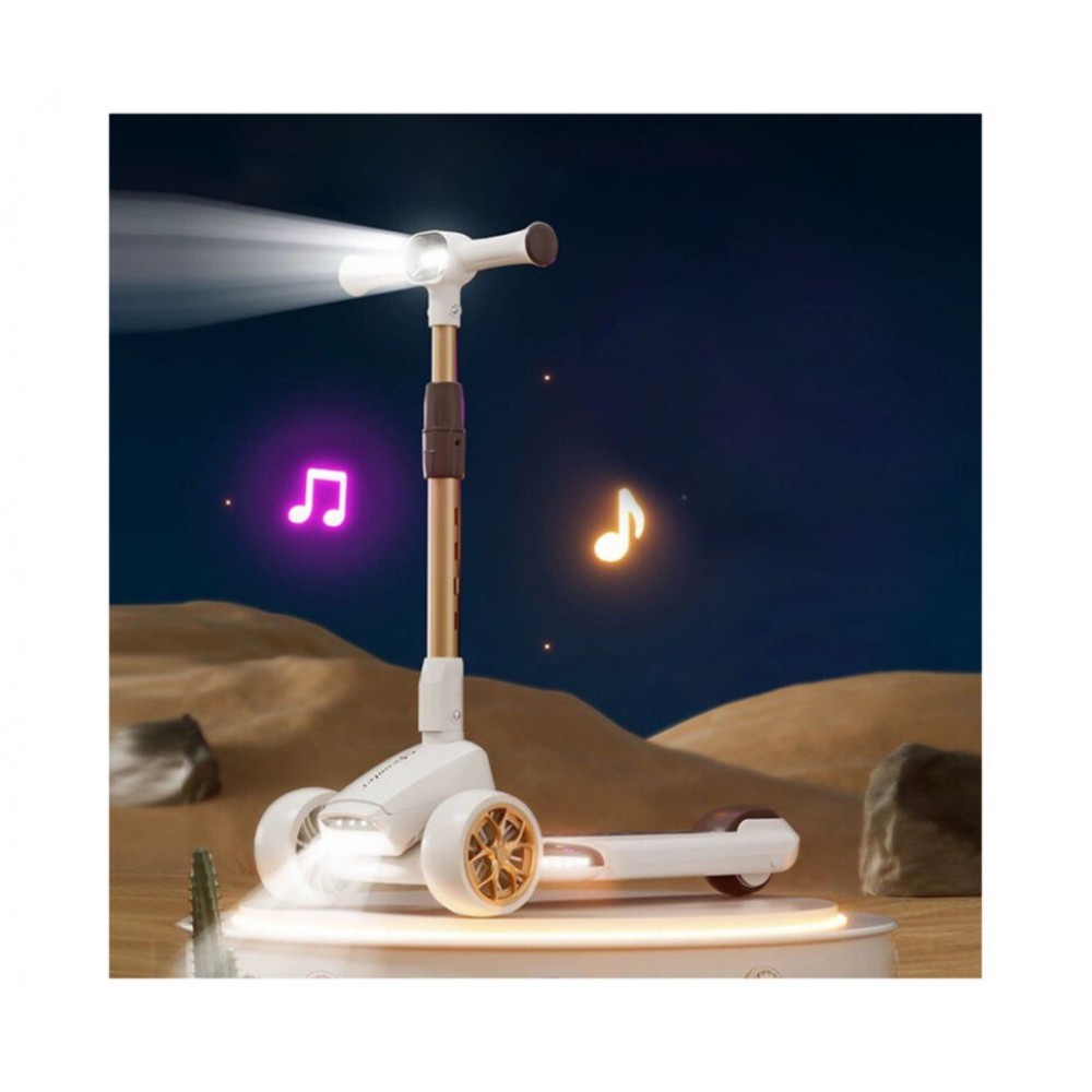 Самокат обладнаний двома LED-ліхтарями — верхнім на кермі та нижнім спереду, що забезпечує хорошу видимість у темний час доби. Підсвітка платформи та світлові колеса роблять катання яскравим і помітним.